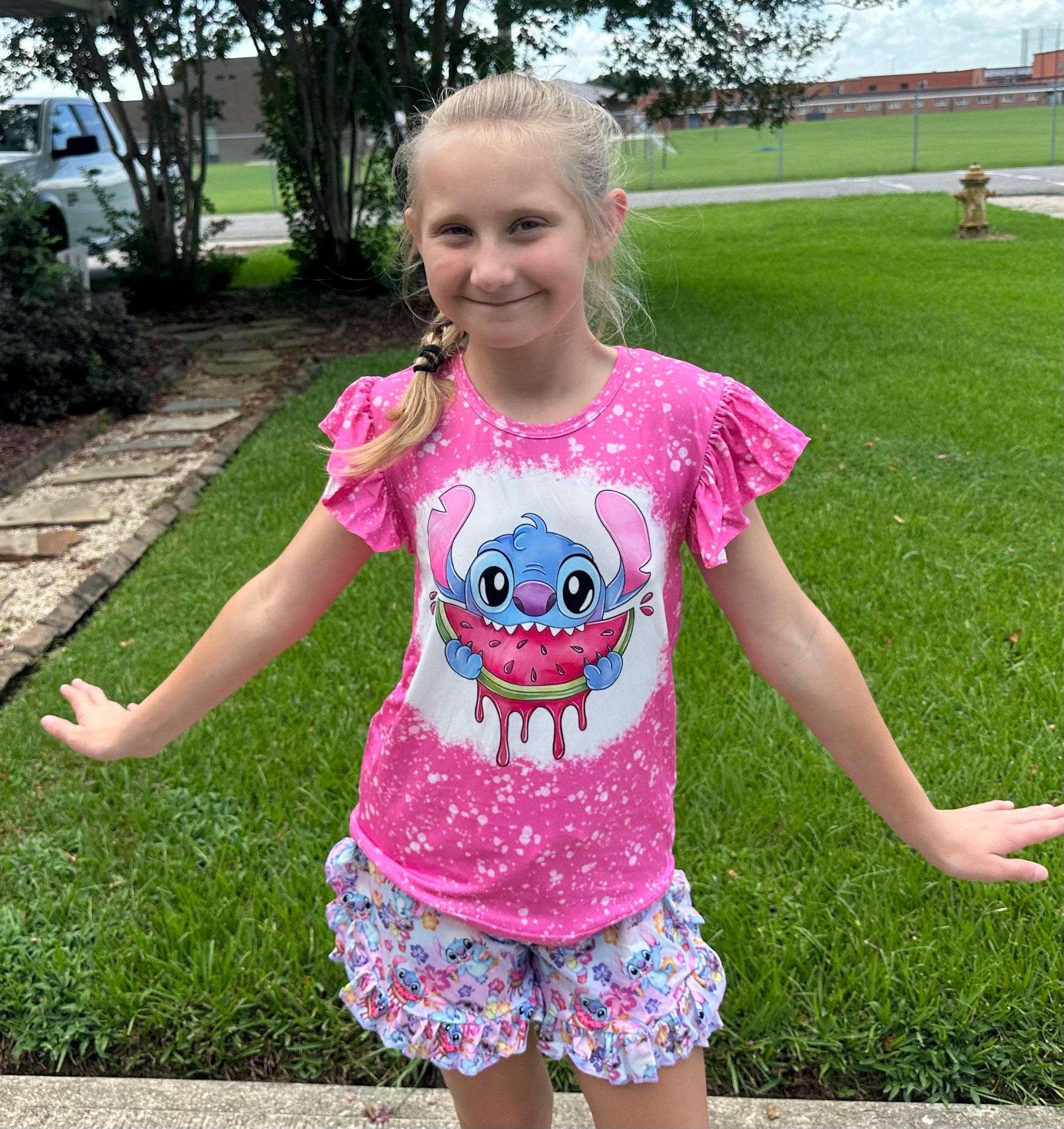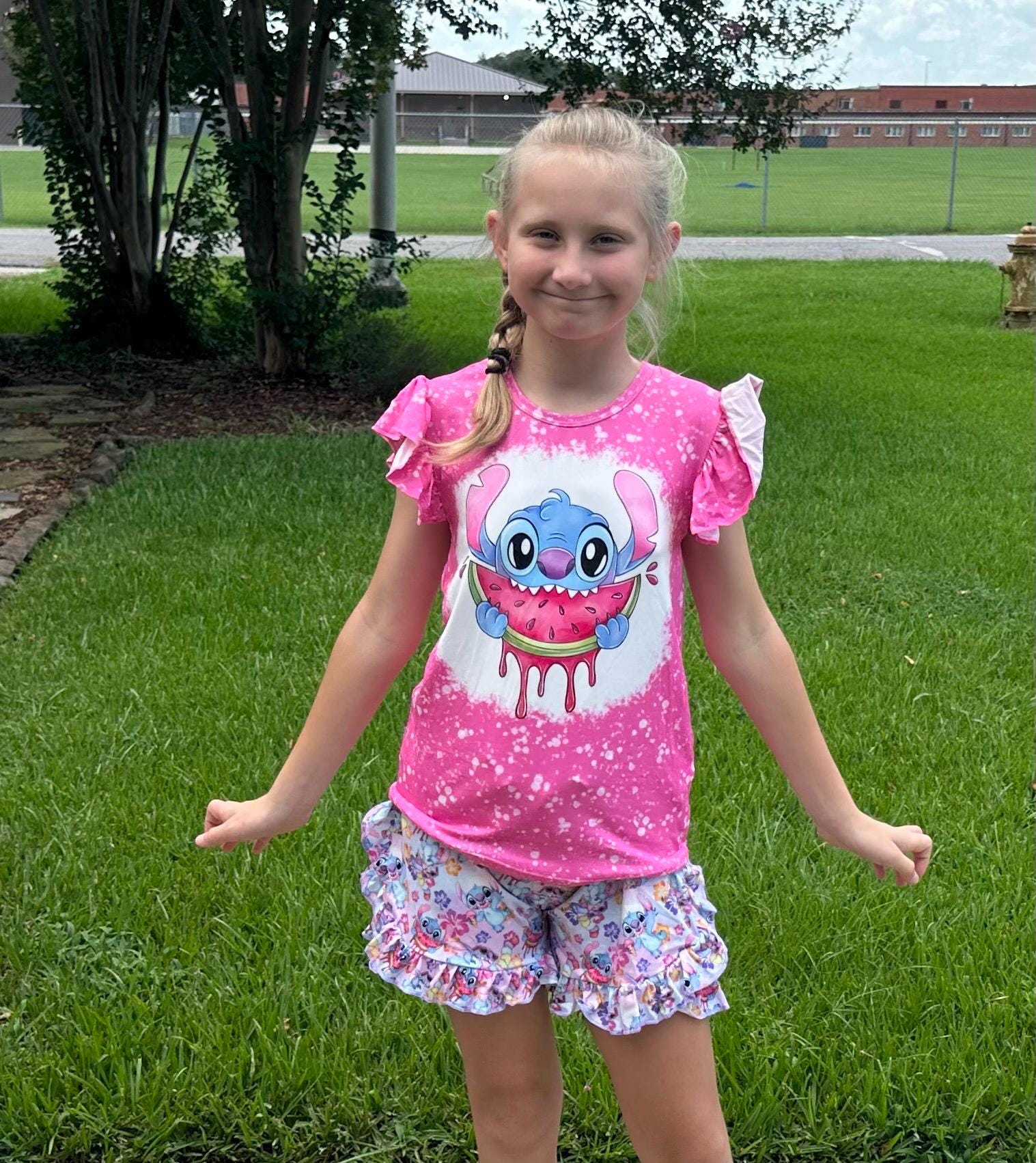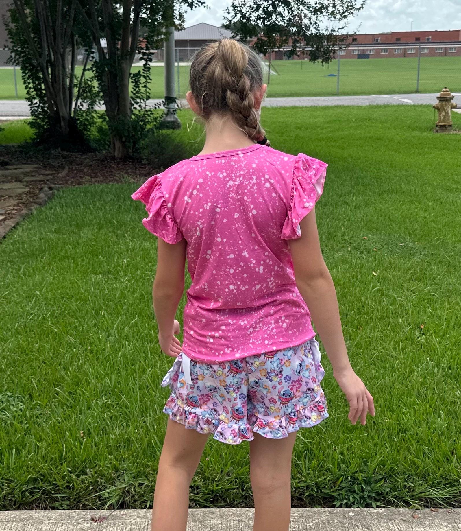 Set includes shorts and matching shirt. Shirt is soft material with flutter sleeves. Shorts have stretchy waistband and are soft