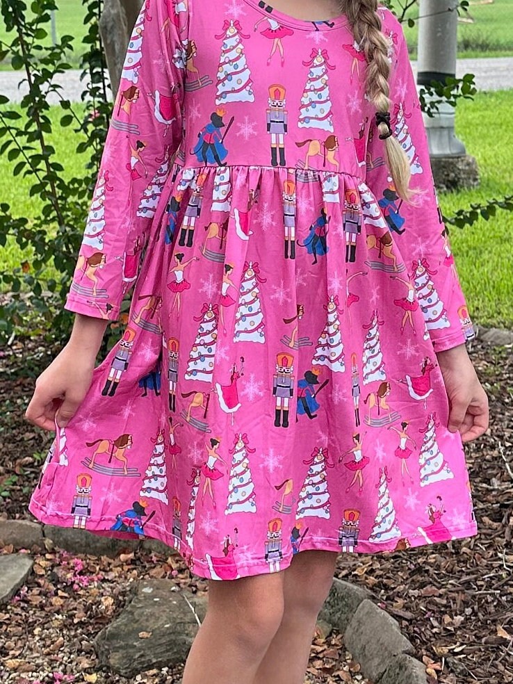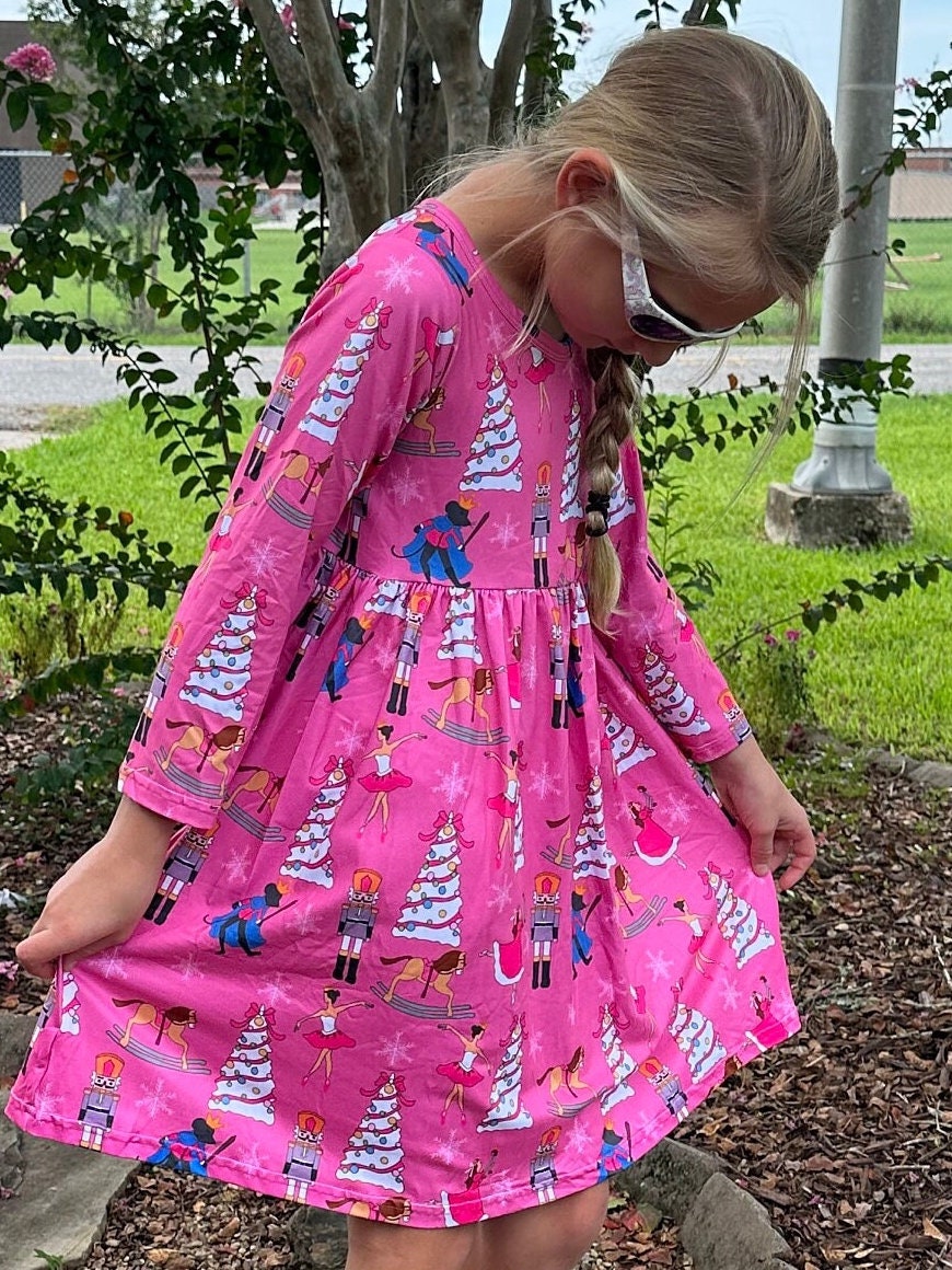 Nutcracker long sleeve dress. Soft material, long sleeve and fun Christmas design. Perfect for holiday parties, plays or every day ware. This dress will not restock